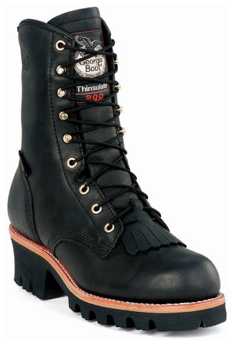 Waterproof / breathable Gore-Tex protection and Thinsulate warmth for hard-loggin' feet! But you don't just have to wear them for logging. Georgia Boots are so well-made and so comfortable, you'll be wearing these Loggers everywhere... and for a long time. See for yourself: Supple full-grain leather upper has a full Cambrelle-lining, Gore-tex bootie; Notched storm welt construction is more weatherproof than other welting methods... fully repairable; 200-gram Thinsulate Ultra Insulation takes the edge off cool fall days and soggy springs; Polyurethane removable orthotic insert; Vibram oil-resistant one-piece rubber cleated "Tacoma" outsole; Supportive ribbed steel shank; Hook-and-eyelet lacing system; Stand approx. 8" tall, weigh approx. 38 ozs. Waterproof, warm feet are just an order away. State Width: medium or wide; and Size. Order Today! Men's Georgia Boot 8" Gore-Tex Insulated Loggers, Black